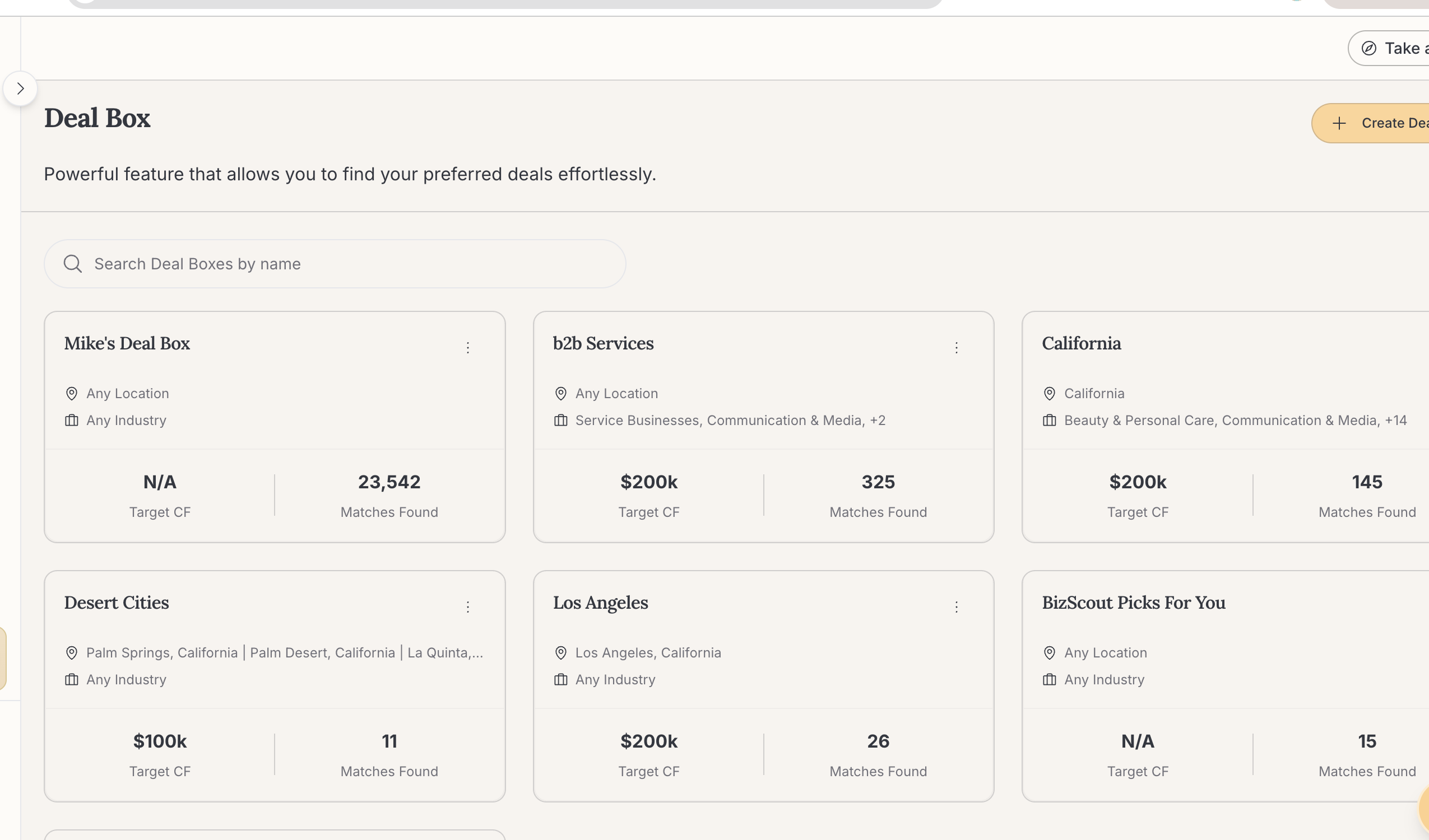 Tell BizScout what you are looking for. ScoutMatch learns your buy box and surfaces deals that fit, so you spend less time scrolling and more time evaluating.